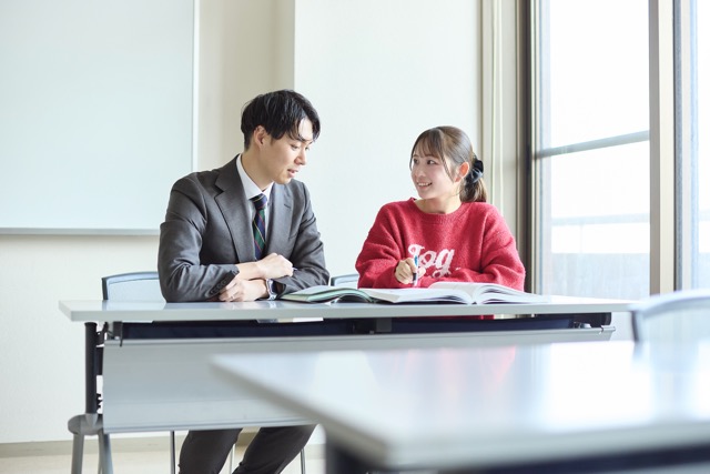 添削、筆記試験対策など、学⽣の希望する就職先の特徴に合わせた個別指導を⾏っています。さらに、外部講師を招いた就職対策講座も実施しており、在学⽣はすべての講座に無料で参加できます。